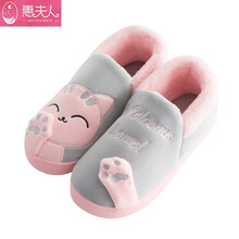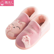 惠夫人宝宝棉拖鞋1-3岁秋冬季包跟室内加绒婴幼儿男女童棉鞋 招财猫全包 粉红色 22码内长约20CM