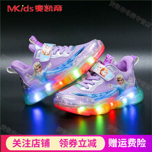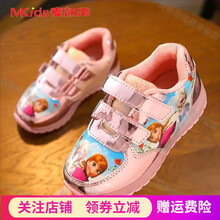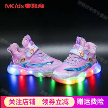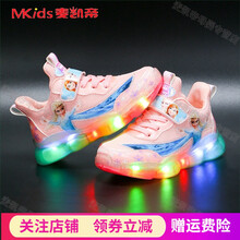 女童发光鞋冰雪奇缘爱莎小公主闪灯童鞋女秋季女孩透气防滑儿童亮灯鞋网面皮面宝宝加绒棉鞋闪灯鞋 粉色 大棉加厚 亮灯 22码【内长13.5厘米】