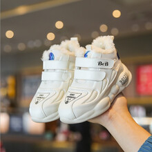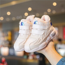 新款男童运动鞋儿童鞋子秋冬款中大童保暖加绒女童短靴防水二棉鞋 黑色(厚绒) 21