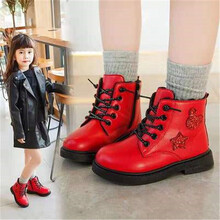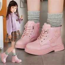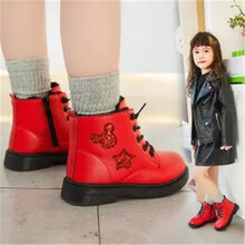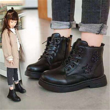 巴布旗 女童马丁靴公主二棉加绒冬新款棉鞋中大童英伦风儿童短靴子春秋 黑色(厚绒大棉)标准码 实心底 26码/内长16.6cm