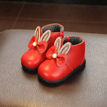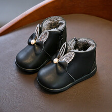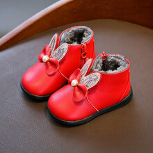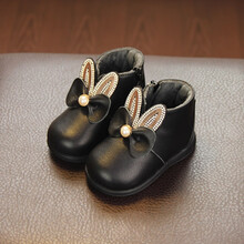 贝贝街区小童鞋女冬加绒婴儿小皮鞋2岁1岁宝宝鞋子公主鞋棉鞋学步鞋短靴子 粉色短绒薄款 15码内长12cm