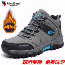 加绒可选西域骆驼男鞋休闲鞋冬季加绒保暖棉鞋男雪地靴特大码男鞋户外登山旅游鞋 8518黑色高帮单鞋 45