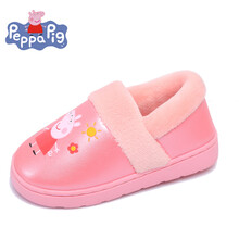 小猪佩奇 2019冬季新款儿童棉拖鞋冬季卡通保暖棉鞋人造革皮防水居家棉鞋 JZL-8863 深蓝 16码
