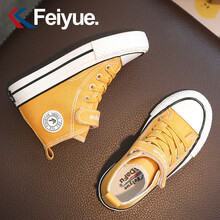 飞跃童鞋透气经典款男童鞋儿童高帮帆布鞋春秋休闲中大童女童板鞋 黑色 30码内长19.5/适合脚长19