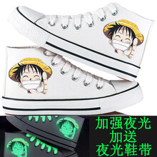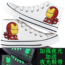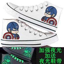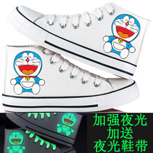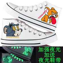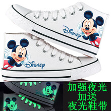 春夏季儿童帆布鞋高帮男童女童板鞋夜光荧光卡通动漫布鞋小白鞋手绘涂鸦鞋亲子鞋 夜光高帮白奶酪 33