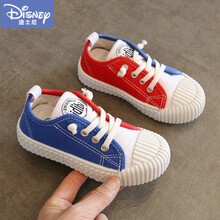 【JD物流】迪士尼 儿童帆布鞋小白鞋男童夏季透气春秋童鞋宝宝饼干鞋潮软底休闲板鞋 305 黑红 28码-内长18cm (适合脚长17.5cm)