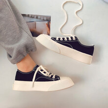 布丁鱼帆布鞋女厚底松糕鞋女学生板鞋大头丑萌鞋2021新款潮流ins经典纯色板鞋 8972黑色 38