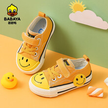 芭芭鸭儿童帆布鞋男童宝宝鞋女童板鞋球鞋子2021春秋季新款卡通布鞋 黑色 18 内长13/适合脚长12.5