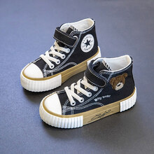 【焕新季】迪士尼大牌童鞋上新儿童高帮帆布鞋2021年春秋新款女童鞋宝宝布鞋子男童潮饼干鞋板鞋 米色 28
