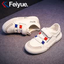 飞跃童鞋2021春夏季儿童帆布鞋女童鞋子幼儿园室内鞋男童布鞋 白红 23码内长16/适合脚长15.5