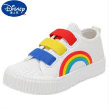 迪士尼 Disney儿童帆布鞋2021年春秋新款糖果色彩虹休闲鞋子宝宝百搭鞋子小白鞋新品 粉色 20码内长13.5cm