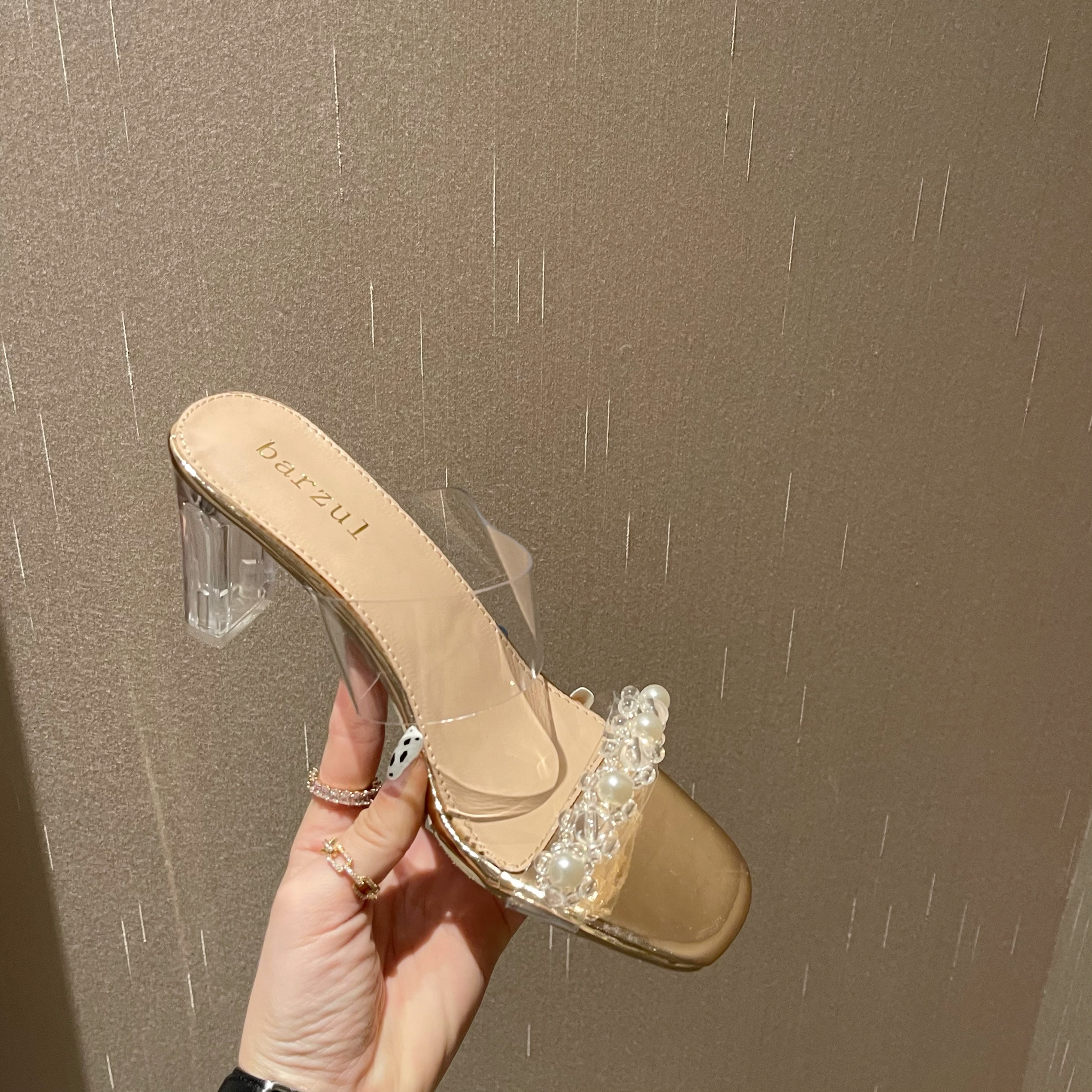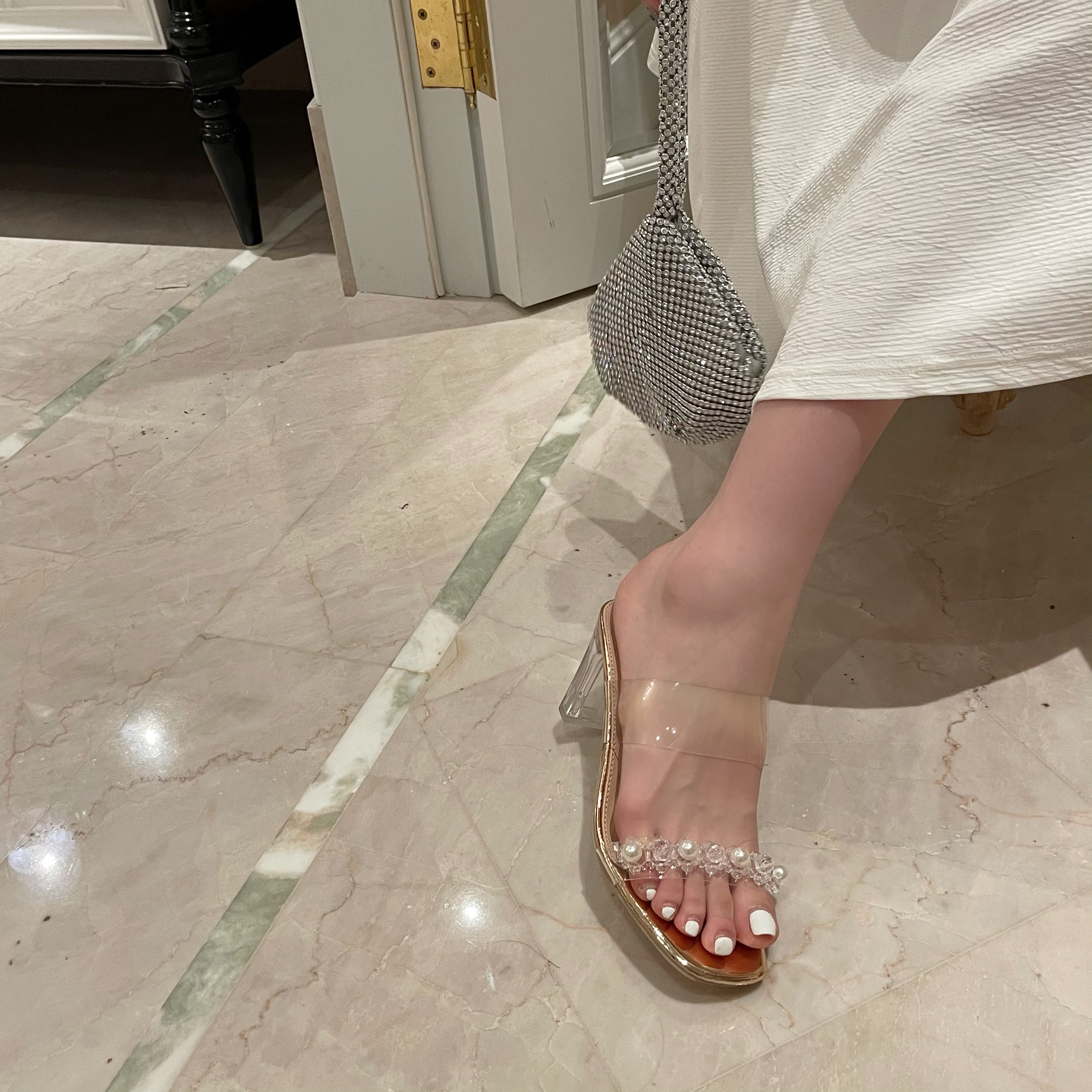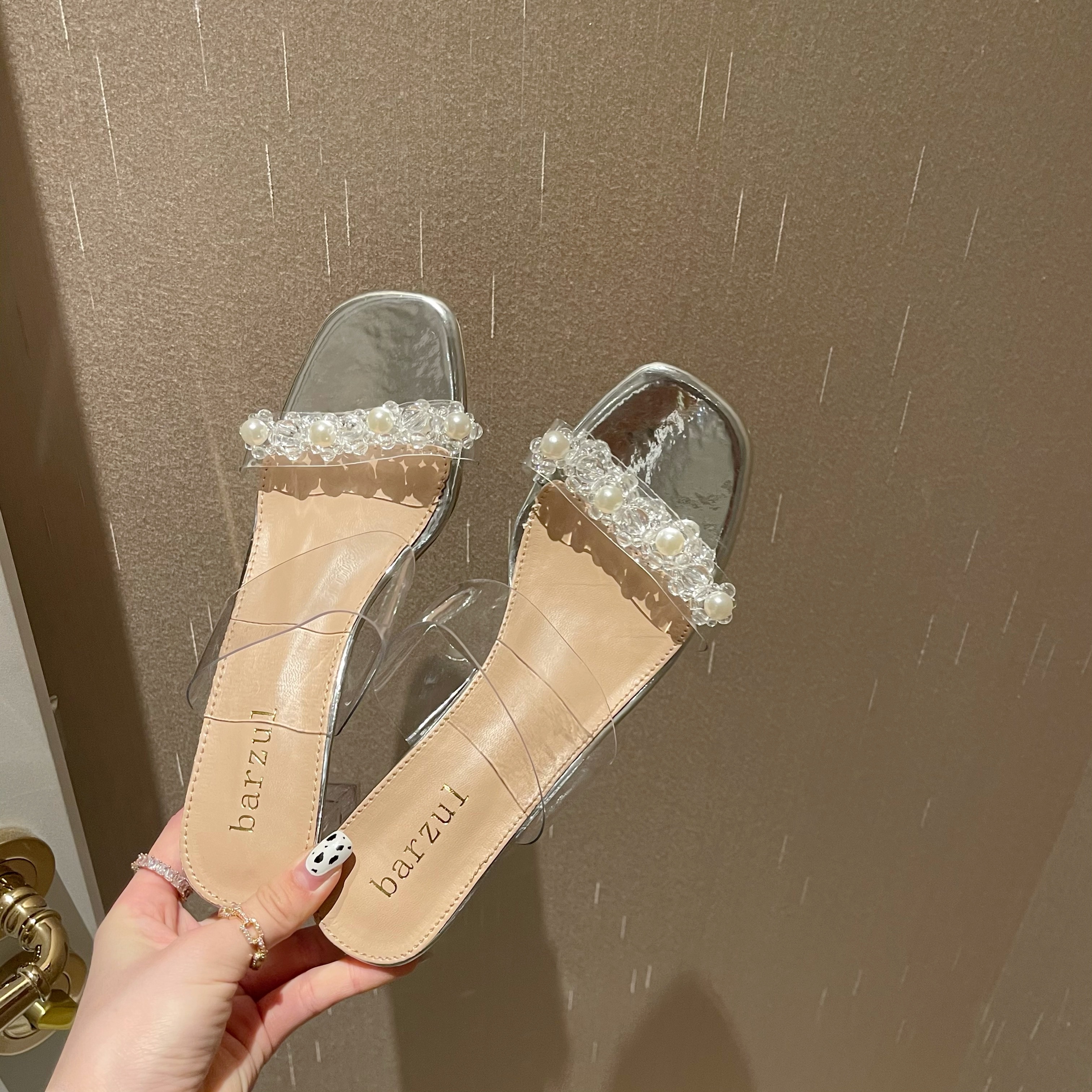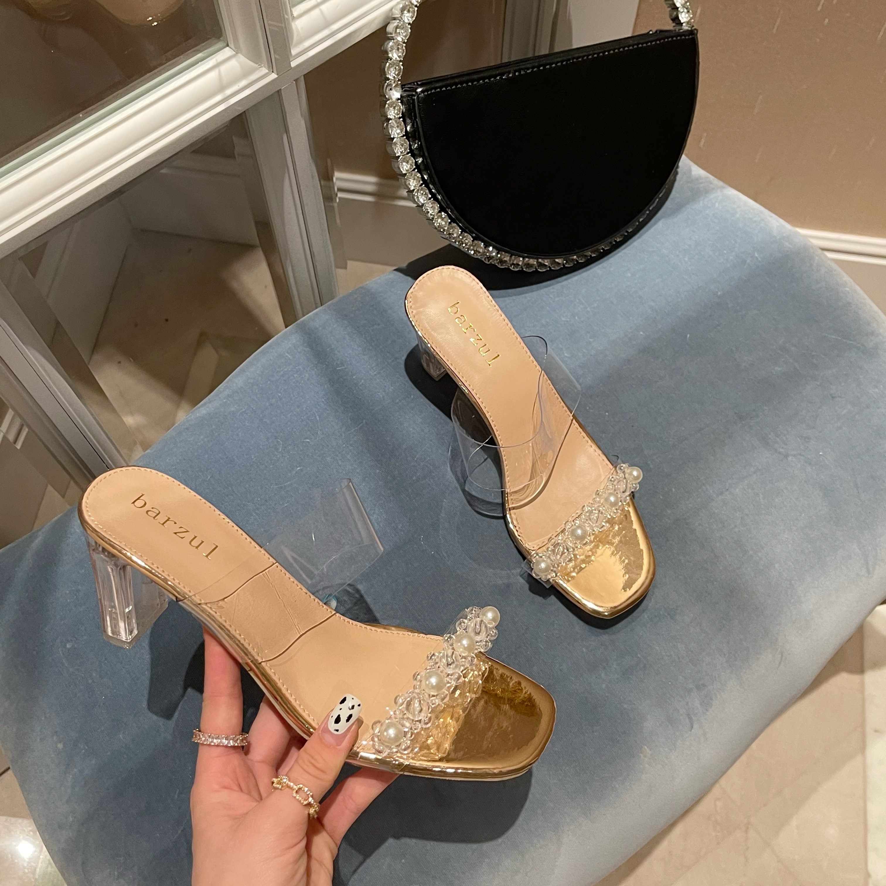 品牌:2021夏款欧美水晶粗跟百搭凉拖鞋