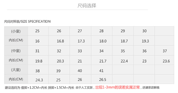 尺码:26 27 28 29 30 31 32 33 34 35 36 37