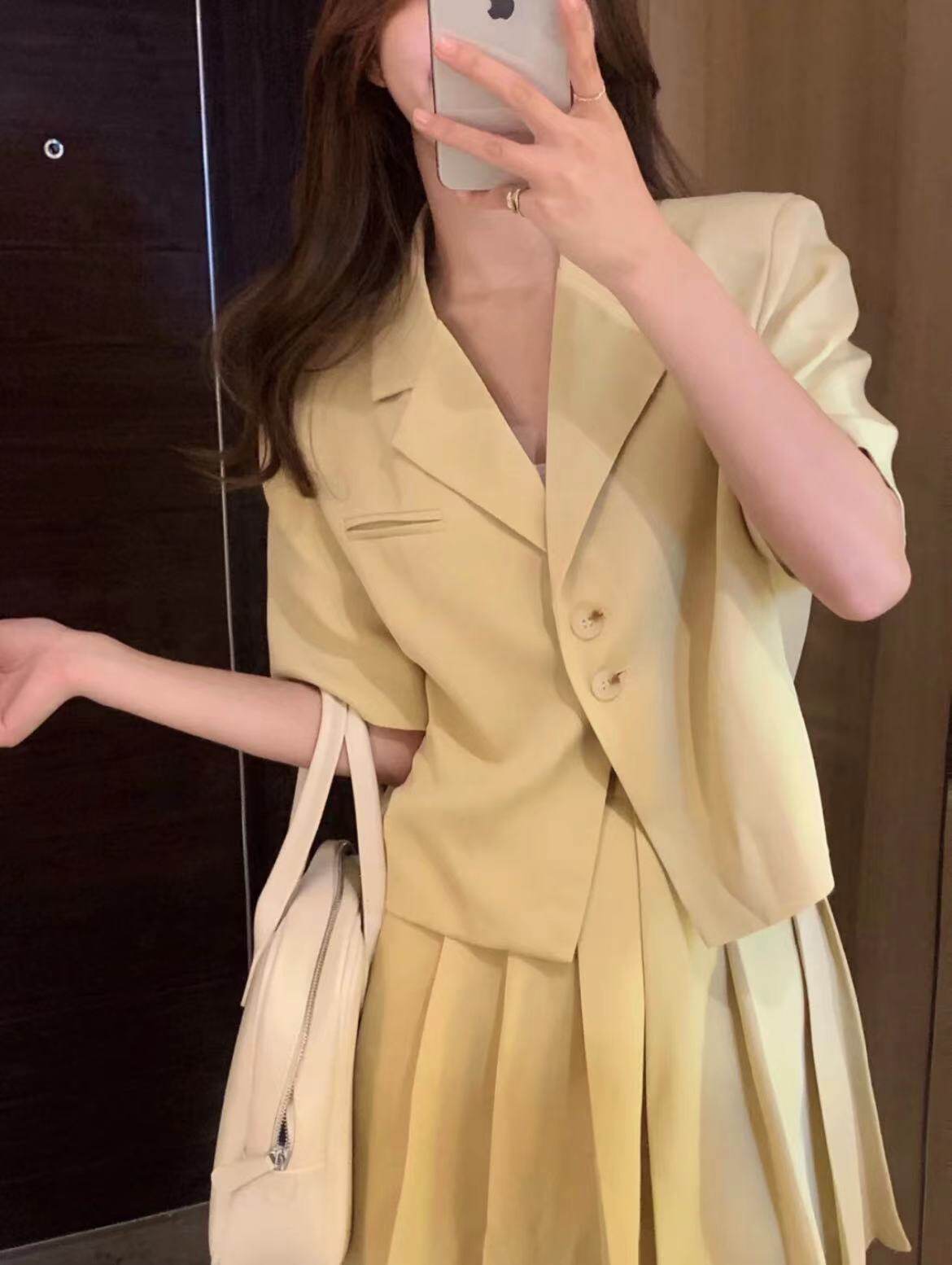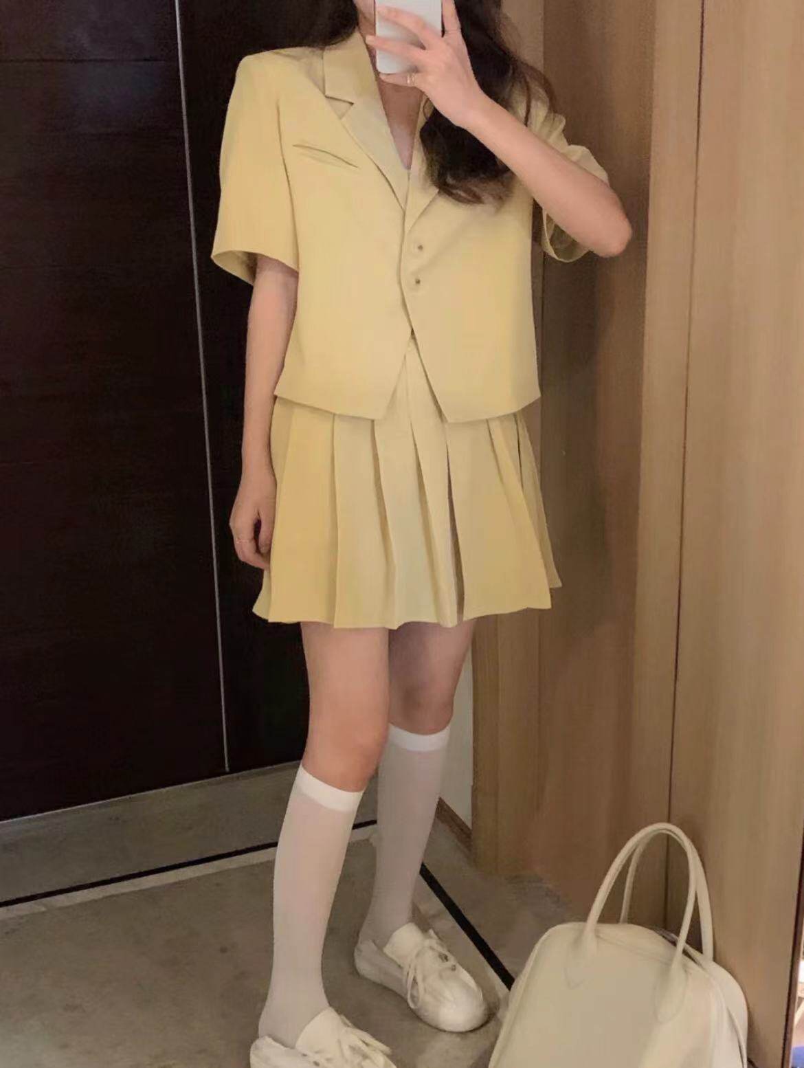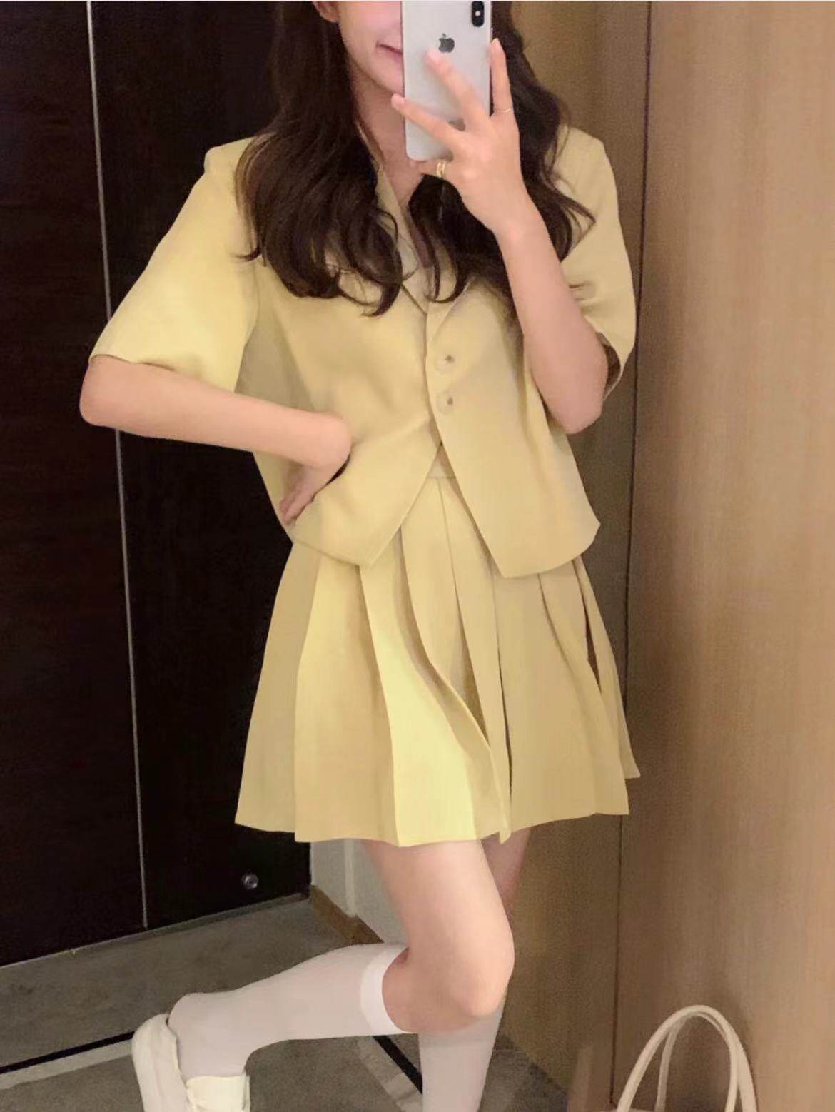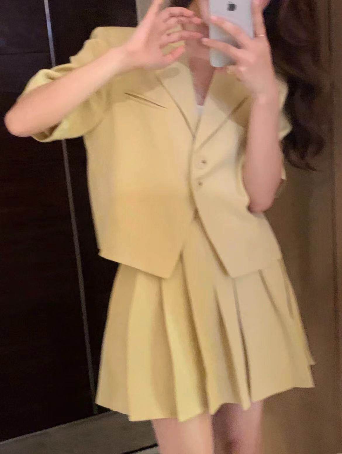 - 颜色分类: 黄色外套 黄色裙子
