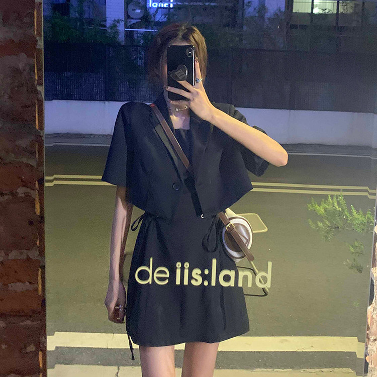 - 颜色:黑色连衣裙 海盐蓝连衣裙 黑色外套 海盐蓝外套