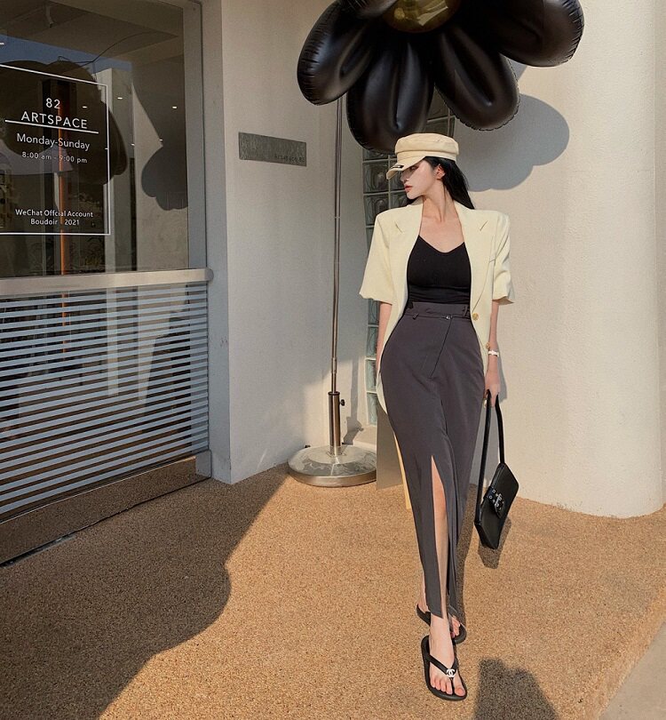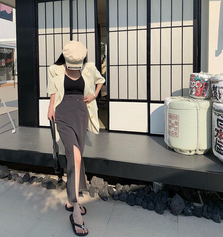 - 颜色分类:灰色半身裙