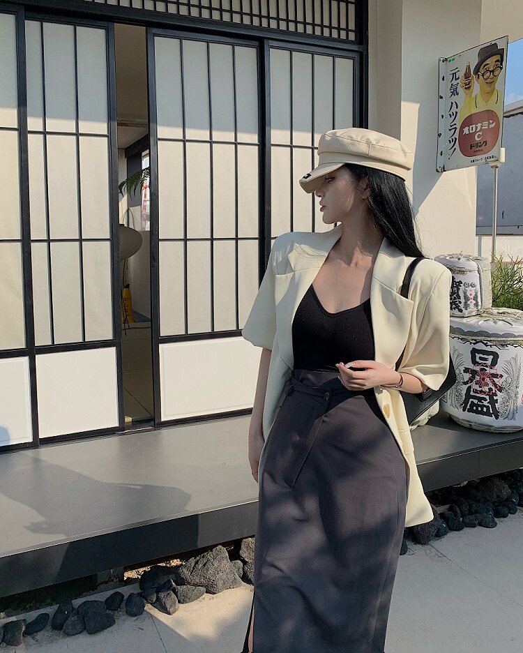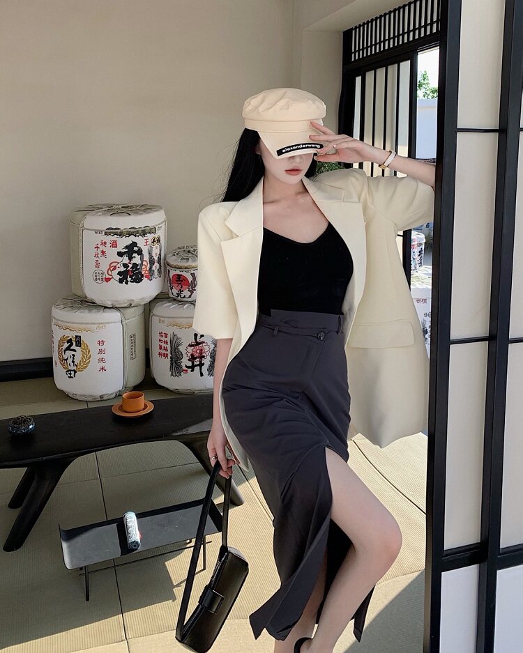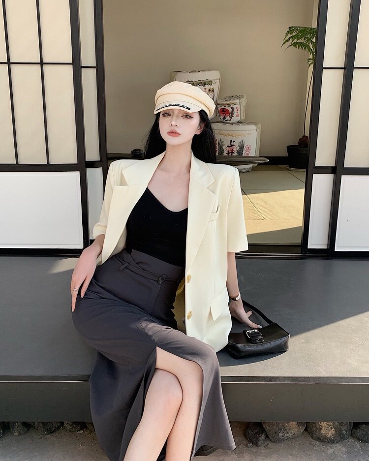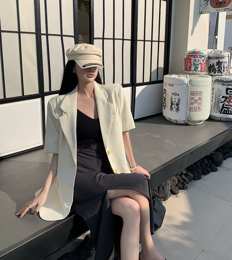 西装 S:衣长72.5cm 肩宽43cm 胸围112cm 袖长27cm M:衣长74cm 肩宽44cm 胸围116cm 袖长28cm