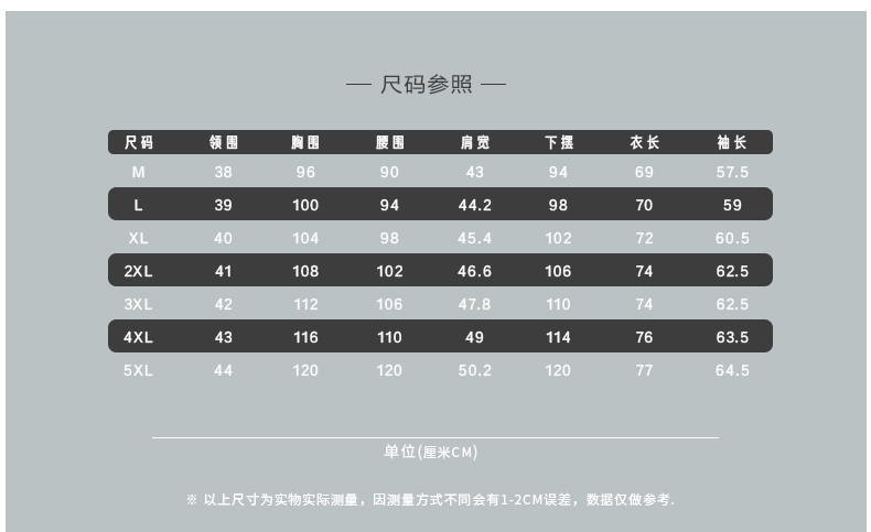 尺码:M L XL 2XL 3XL 4XL 5XL