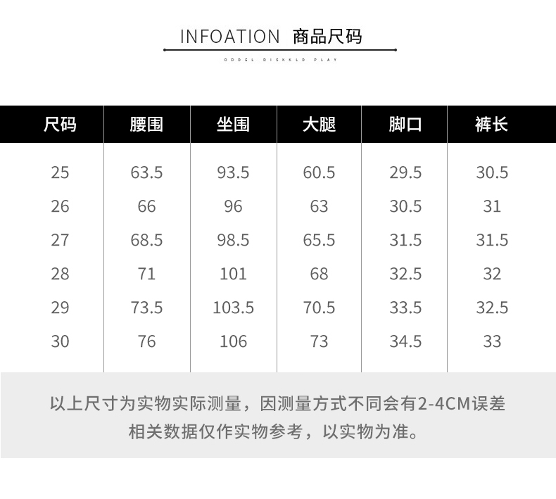 尺码:25 26 27 28 29 30