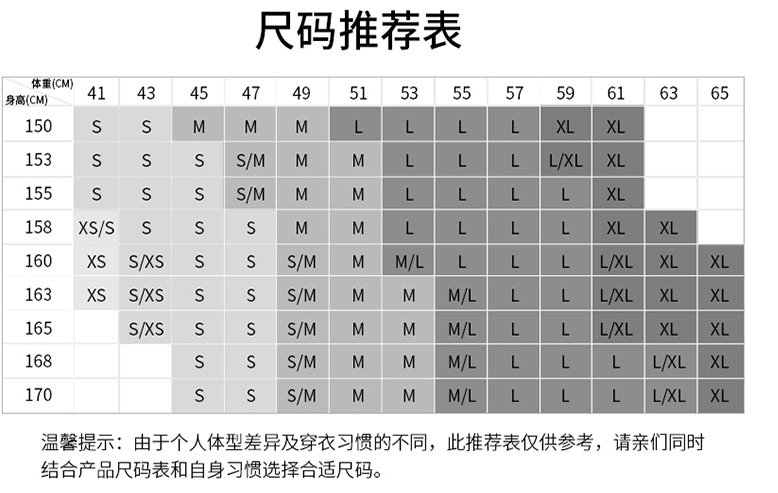 尺码:XS S M L XL
