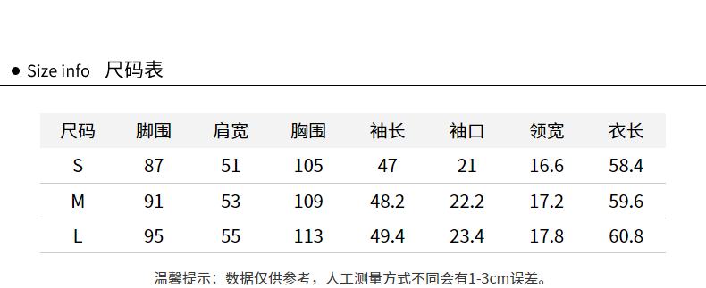 尺码:S M L