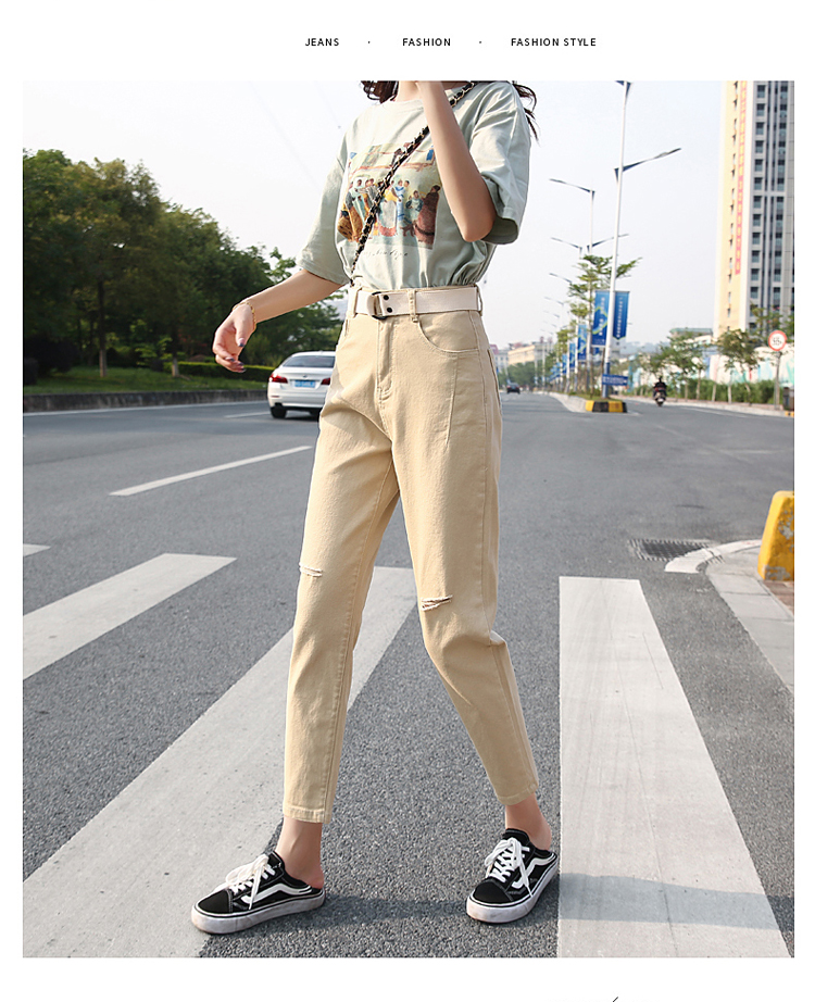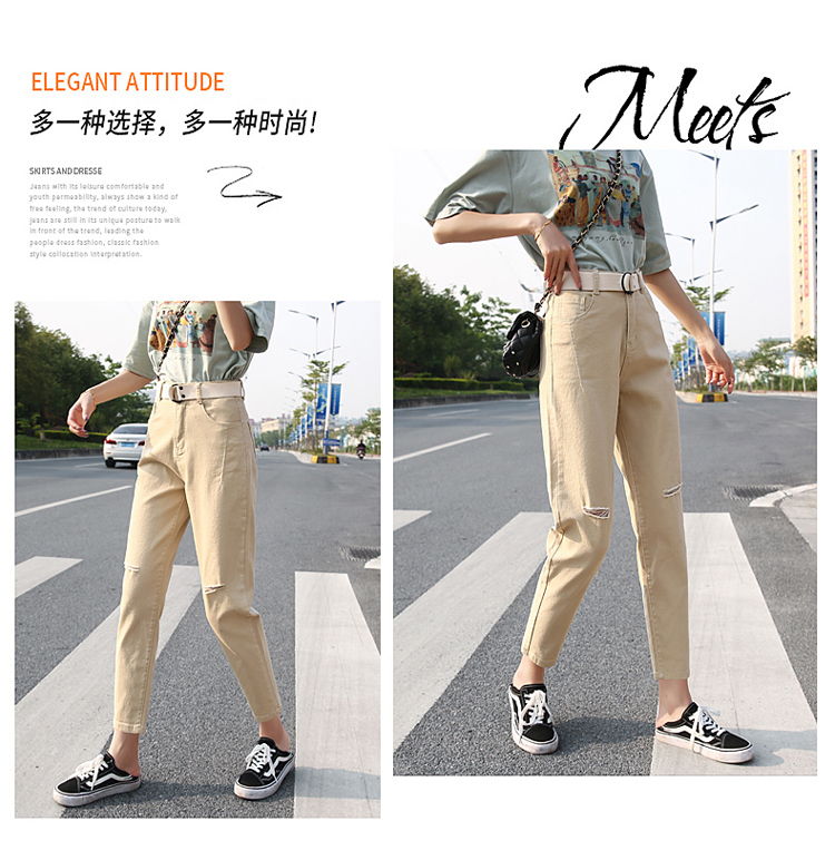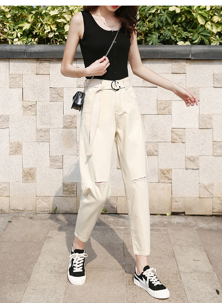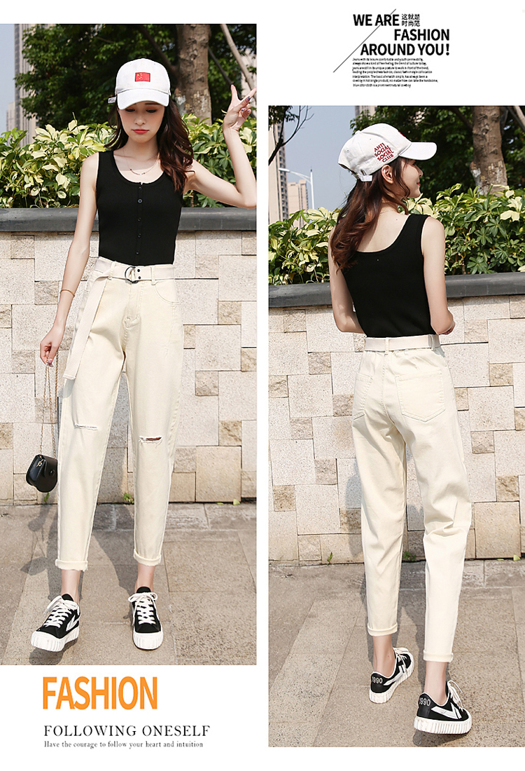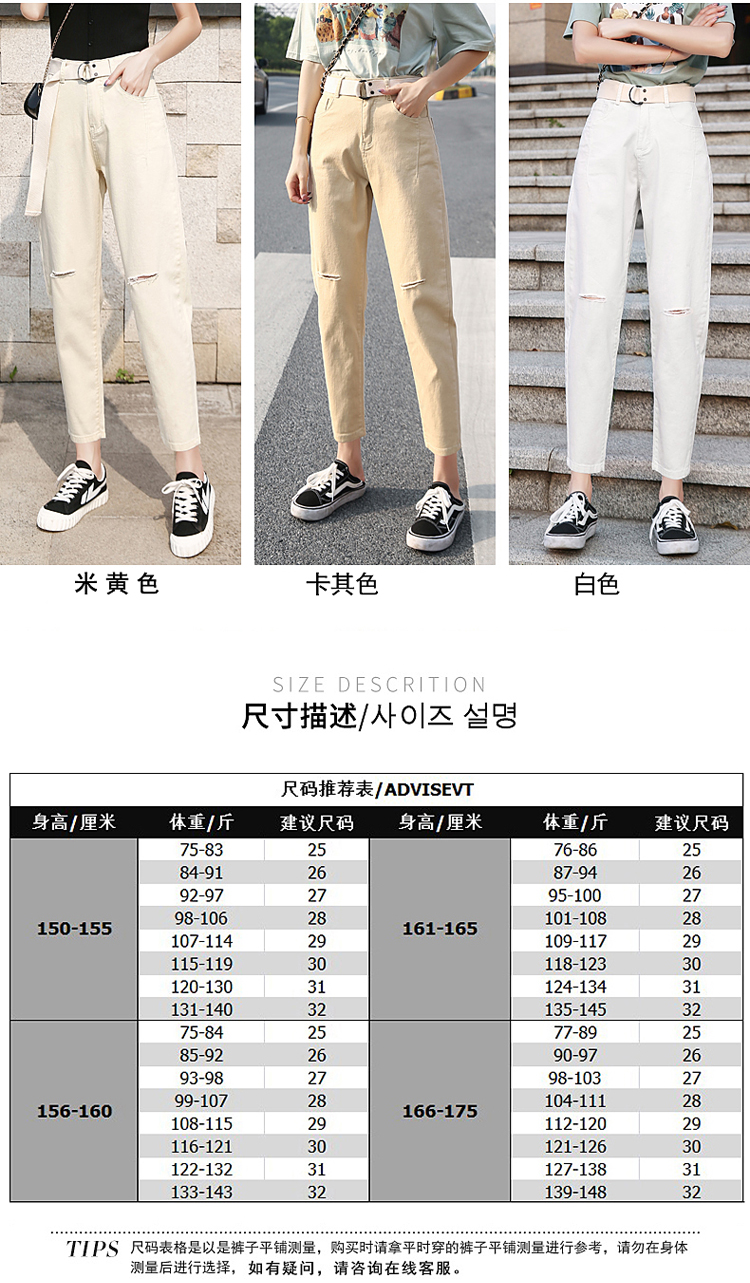 颜色:白色破洞 米黄破洞 卡其破洞 白色无破洞 米黄无破洞 卡其无破洞