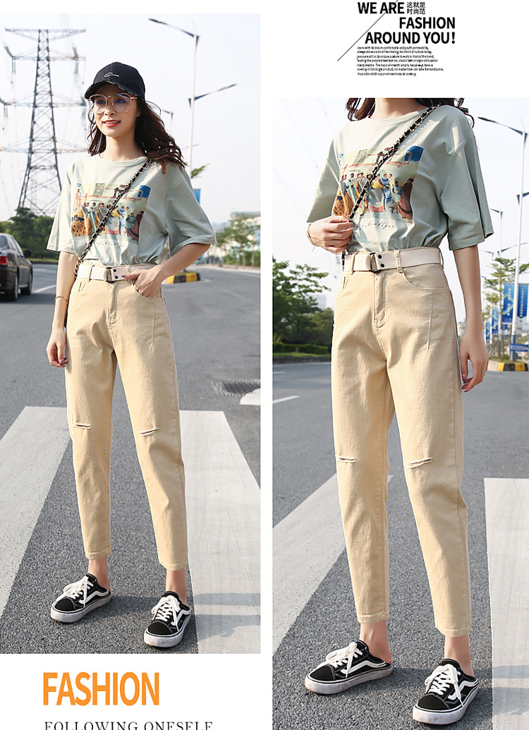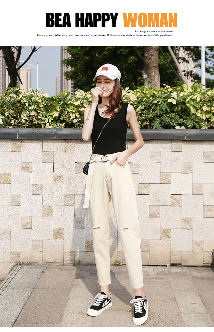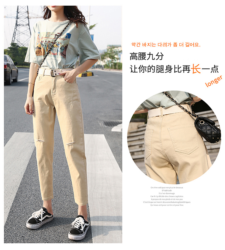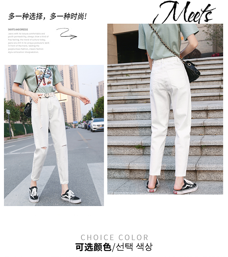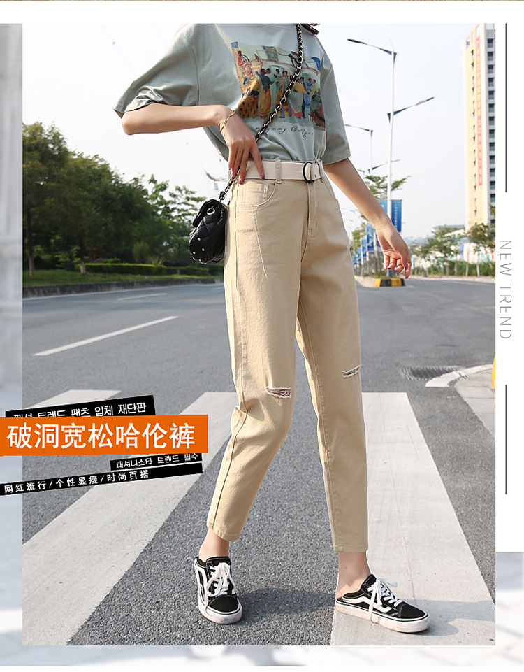 颜色:白色破洞 米黄破洞 卡其破洞 白色无破洞 米黄无破洞 卡其无破洞