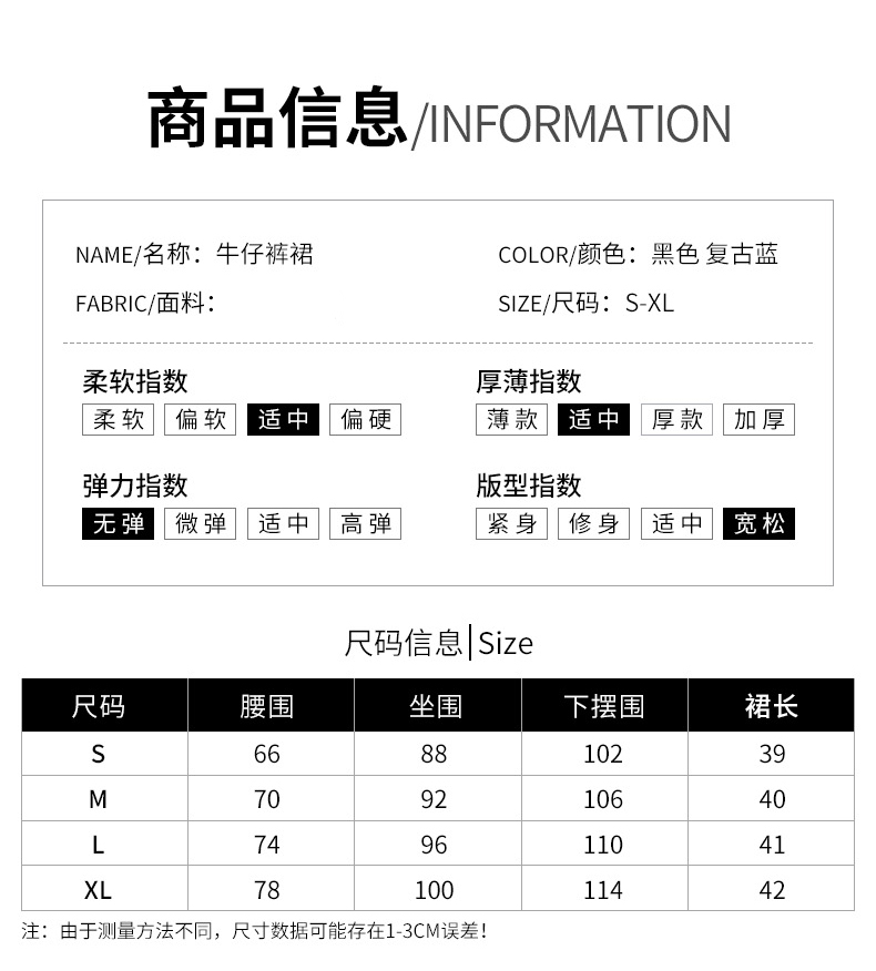 裙型:牛仔裙