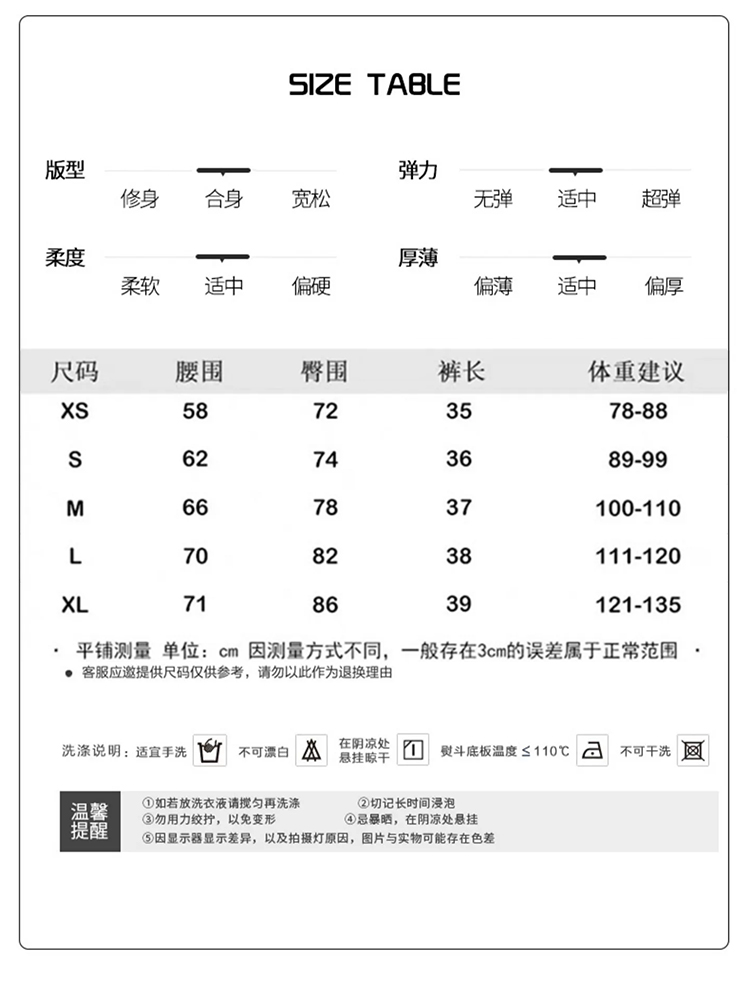 尺码:XS S M L XL