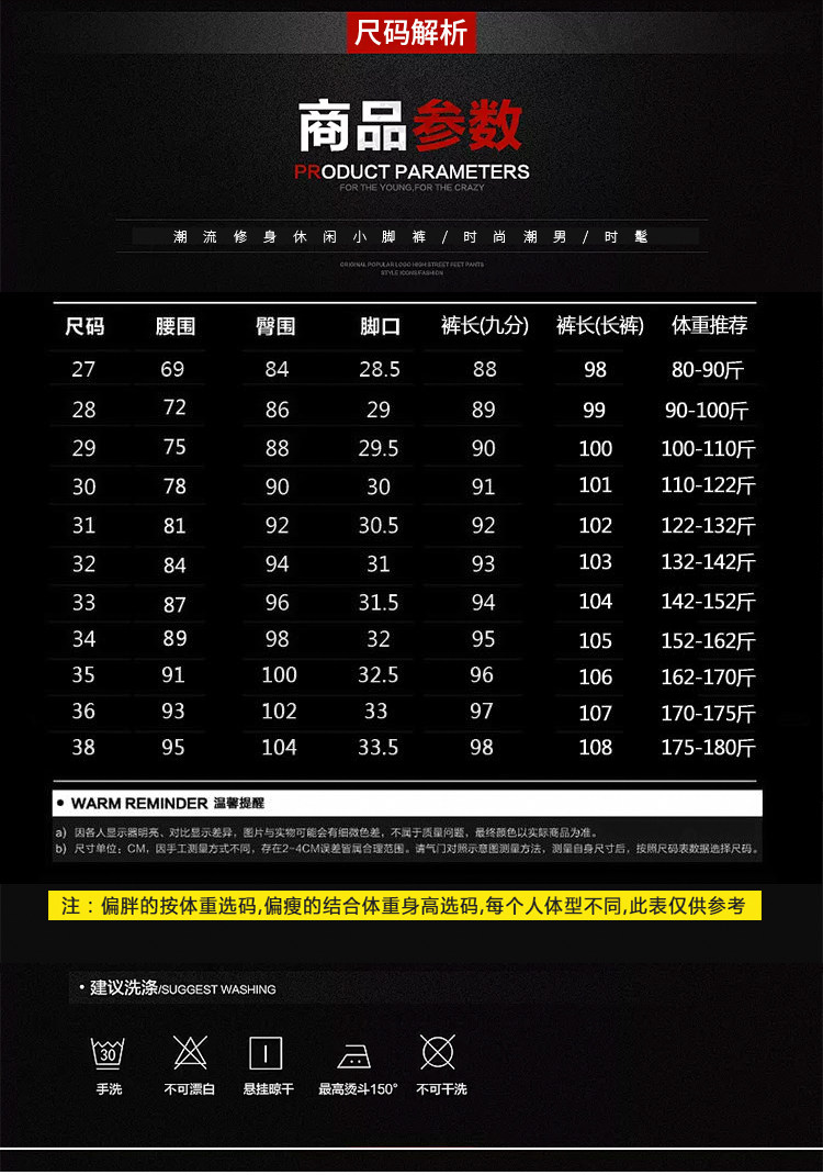 - 裤脚口款式:小脚