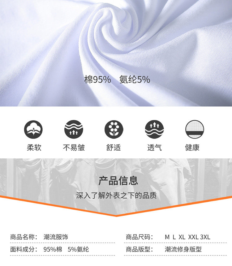 材质成分:棉95% 聚氨酯弹性纤维(氨纶)5%