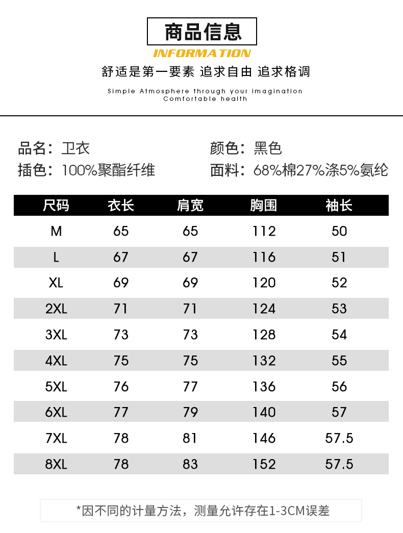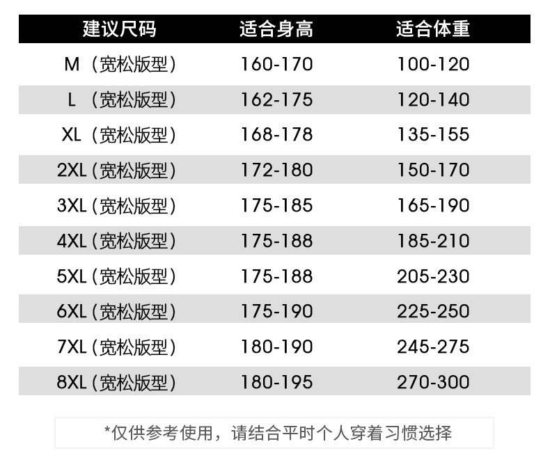 尺码:3XL 4XL M L 5XL XL 6XL 7XL 2XL 8XL