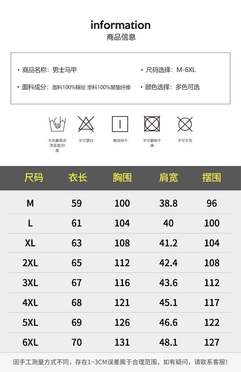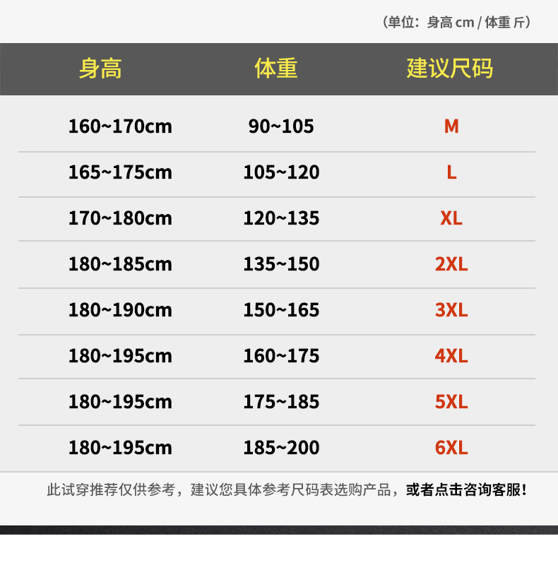 尺码:M L XL 2XL 3XL 4XL 5XL 6XL