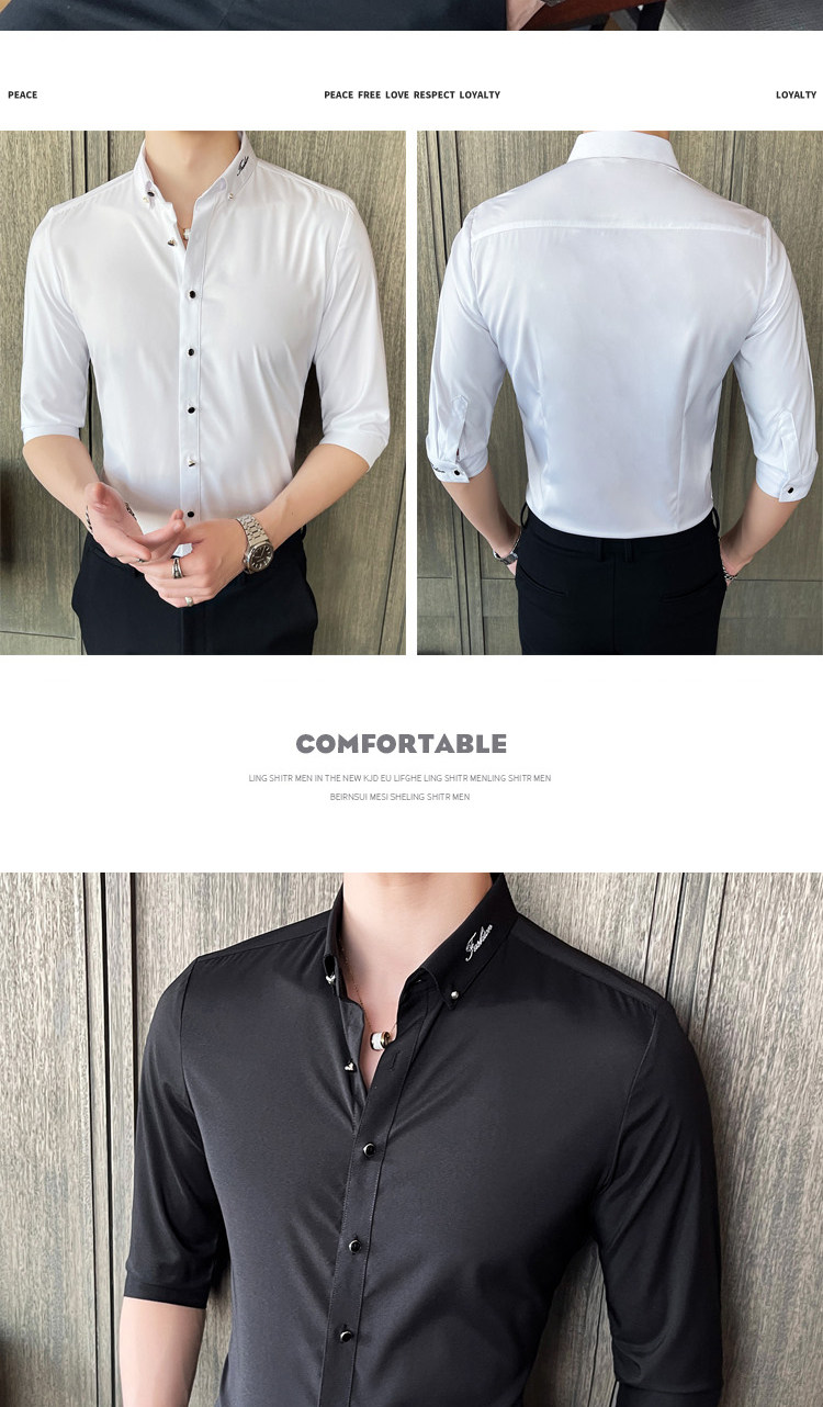 - 领型:扣领尖领