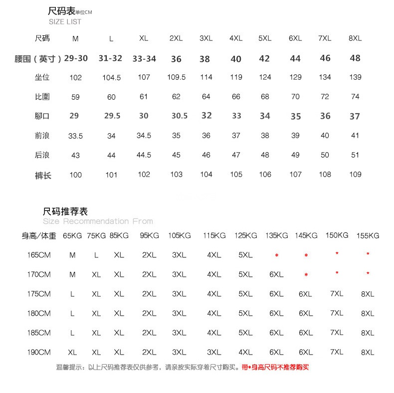 - 尺码:M 100斤左右可穿 L 120斤左右可穿 XL 140斤左右可穿 2XL 160斤左右可穿 3XL 180斤左右可穿 4XL 200斤左右可穿 5XL 225斤左右可穿 6XL 240斤左右可穿 7XL 265斤左右可穿 8XL 285斤左右可穿
