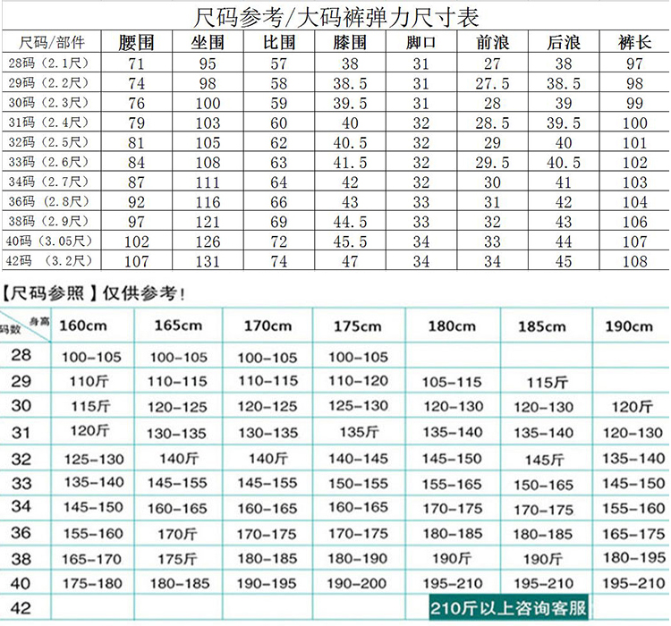 - 尺码:28 29 30 31 32 33 34 36 38 40 42