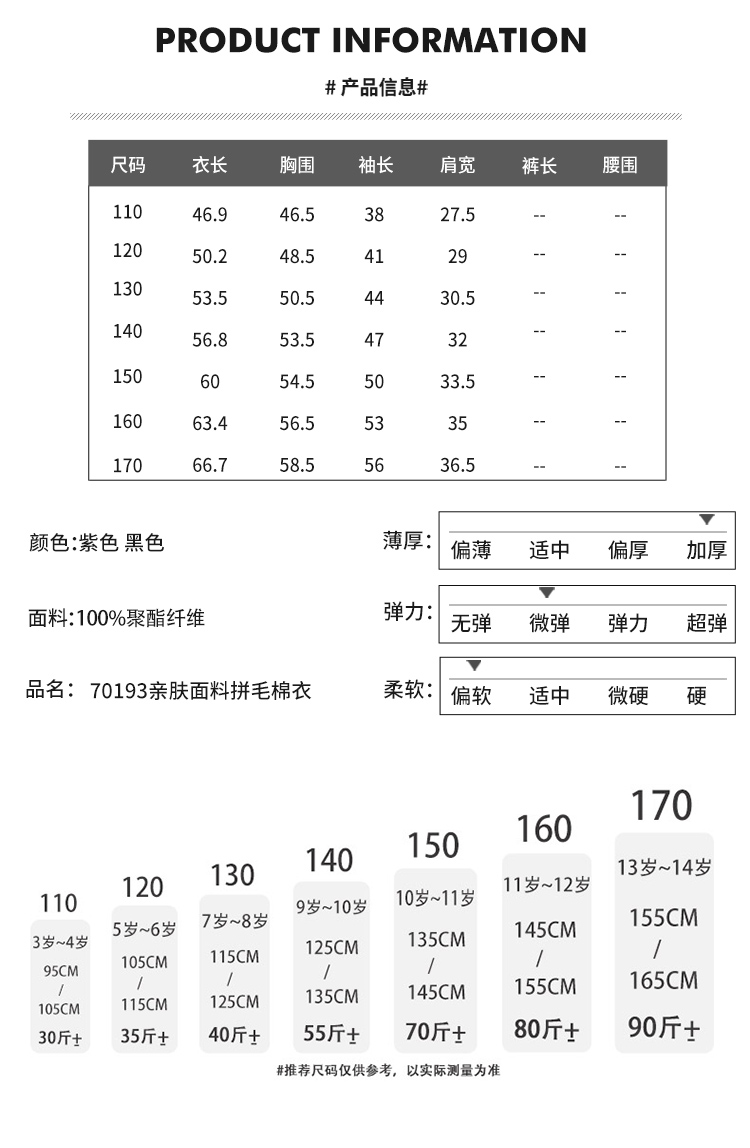 尺码:110cm 120cm 130cm 140cm 150cm 160cm 170cm