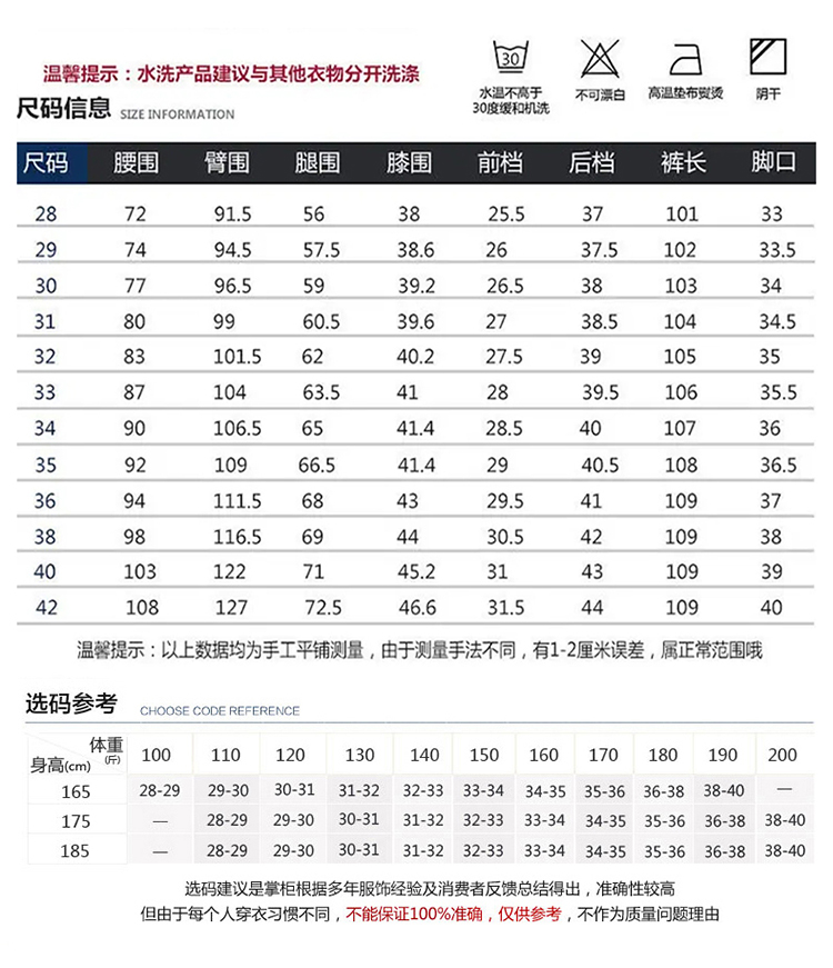 尺码:28 29 30 31 36 40 34 33 38 32
