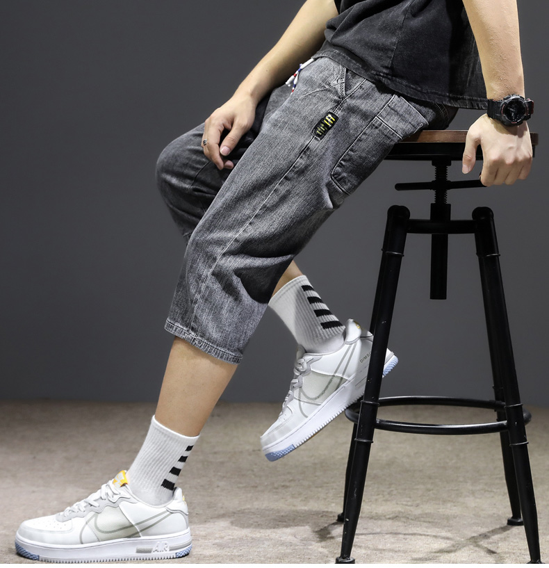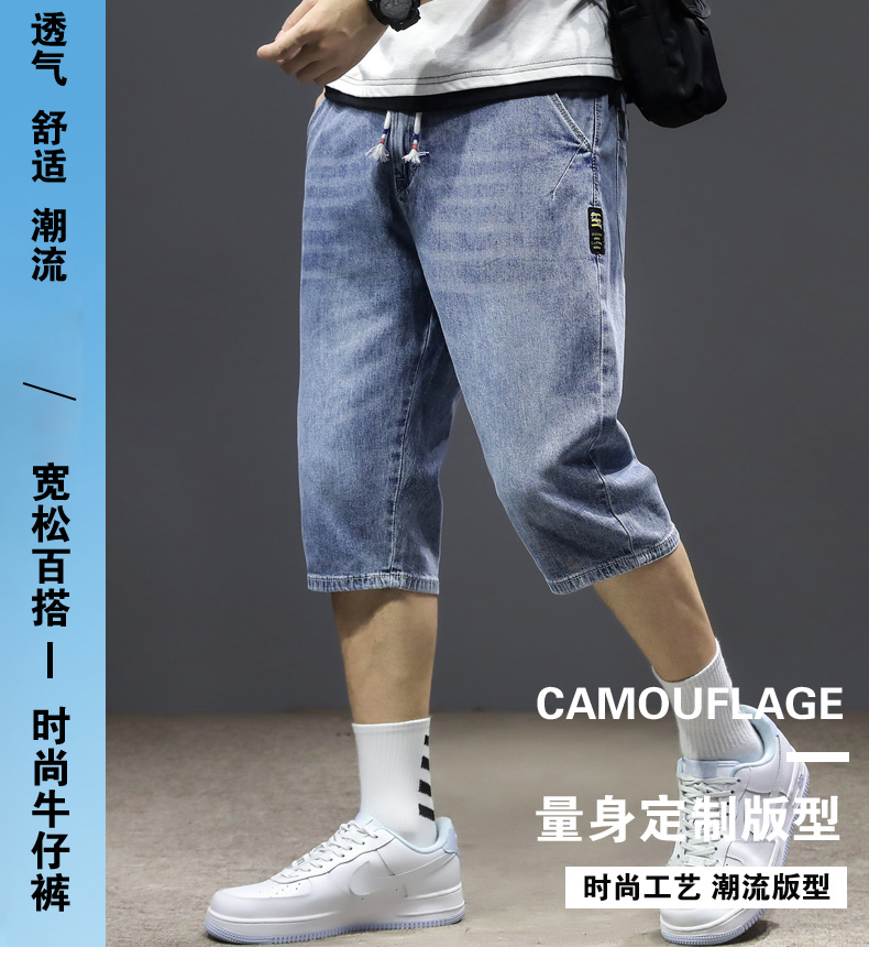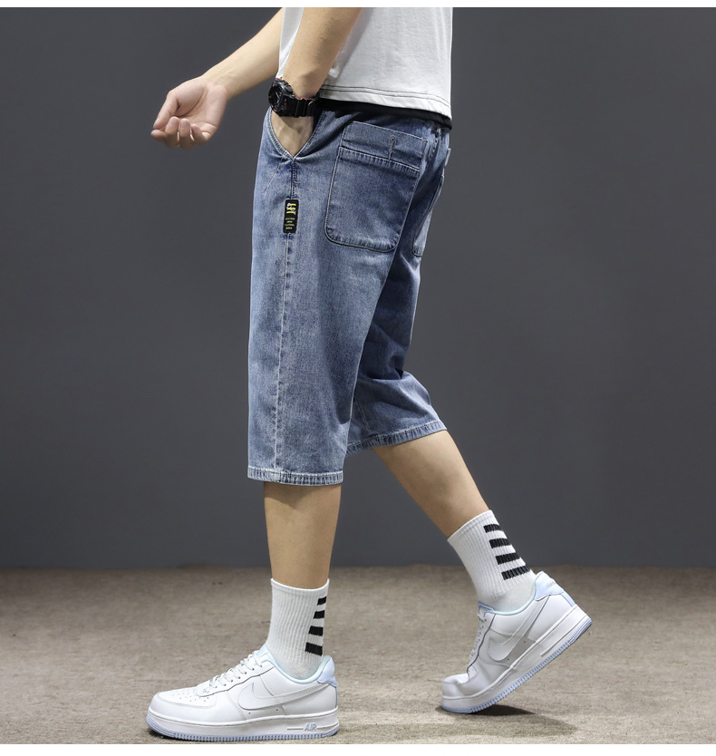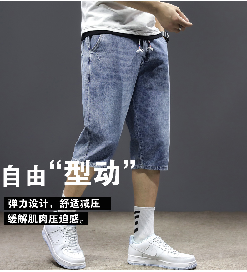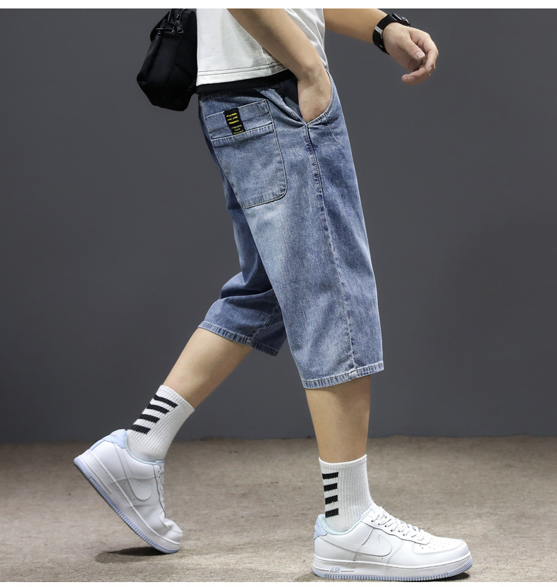 七分裤男夏季薄款牛仔短裤宽松哈伦直筒潮流百搭2021年7分中裤男