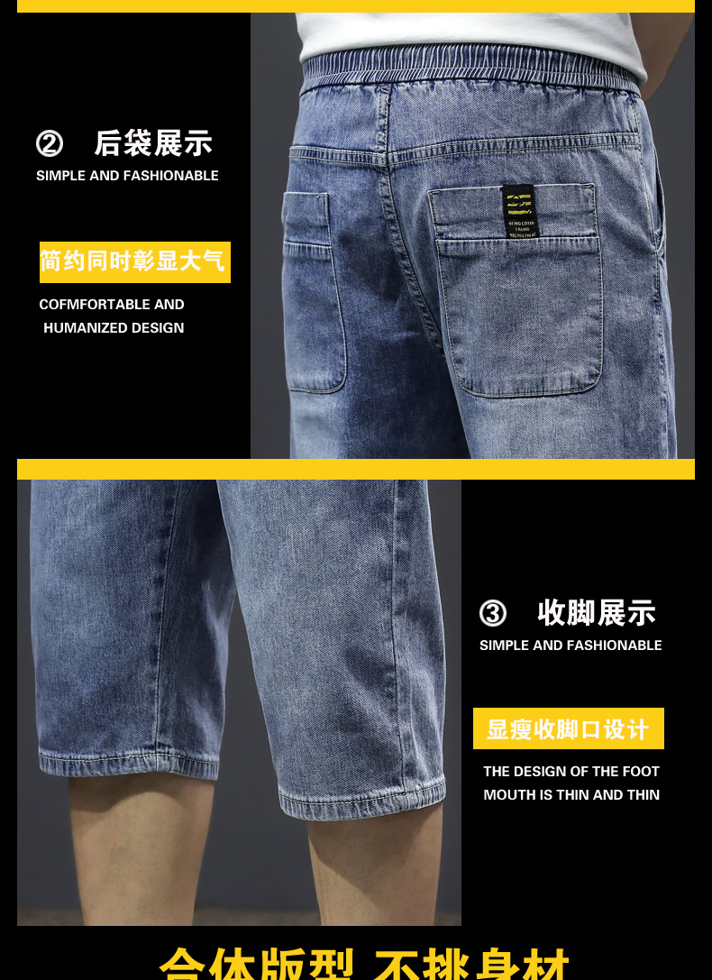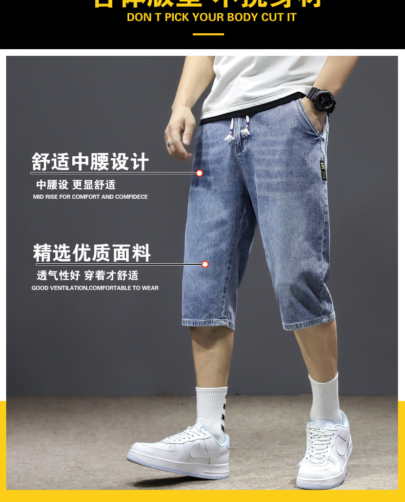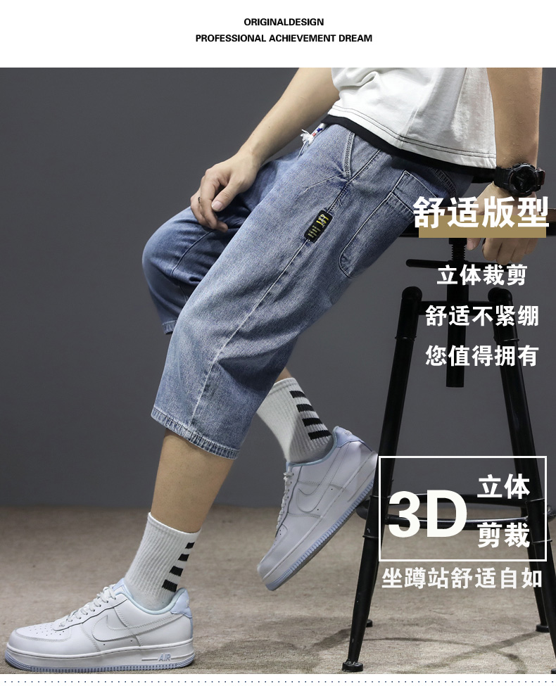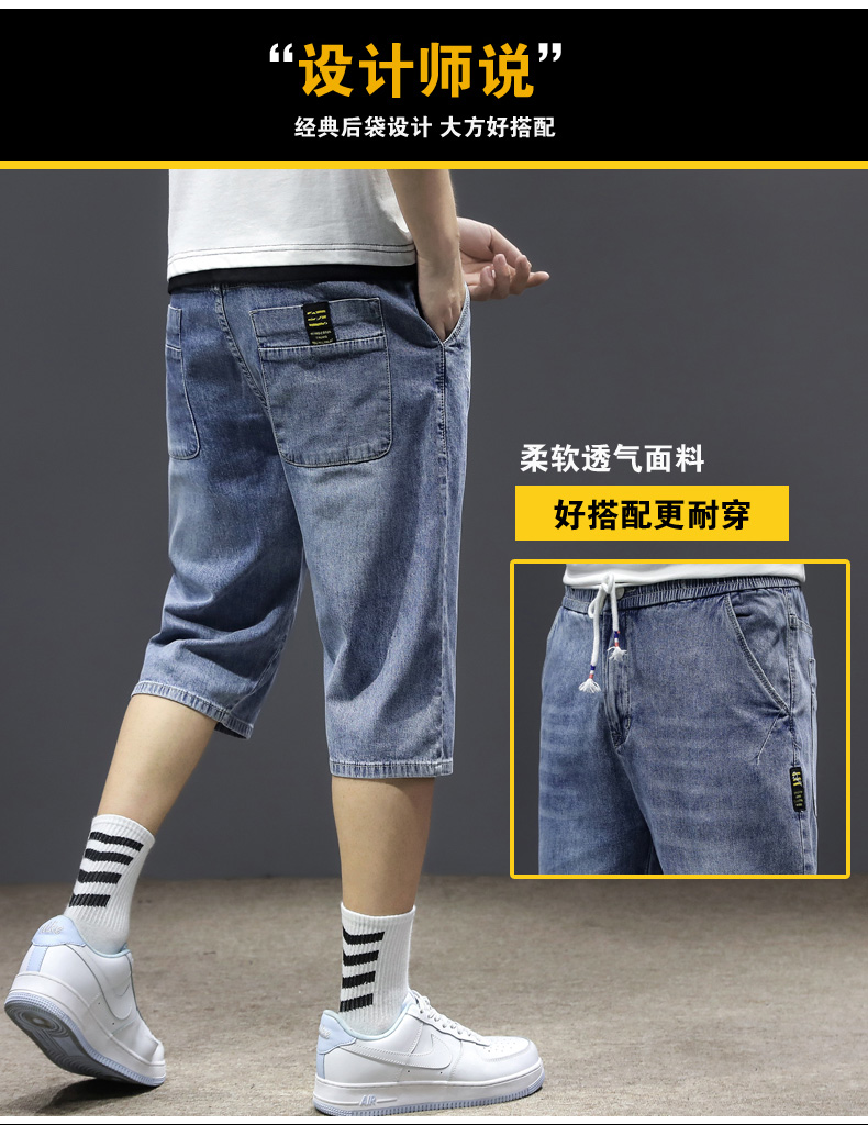 七分裤男夏季薄款牛仔短裤宽松哈伦直筒潮流百搭2021年7分中裤男