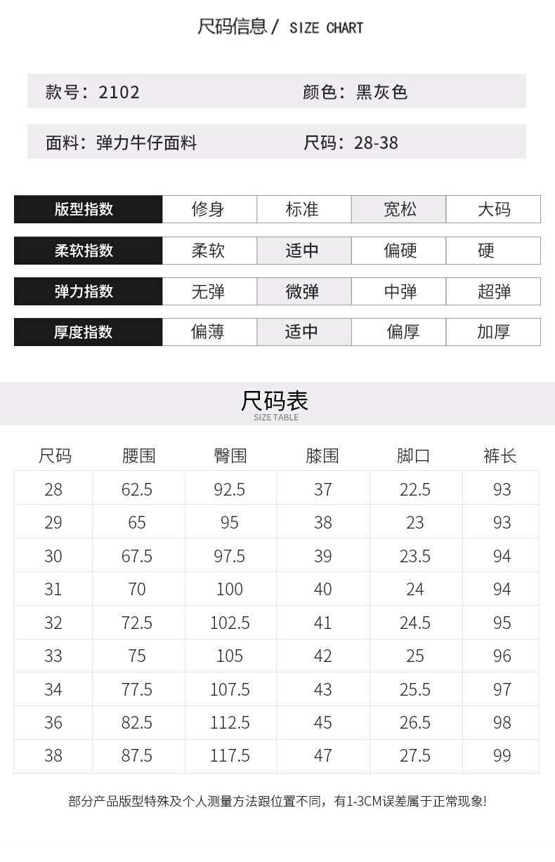 尺码:28 29 30 31 32 33 34 36 38