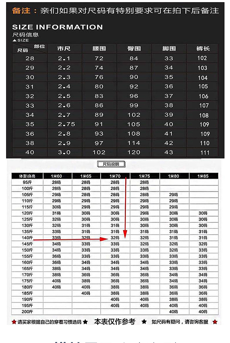 尺码:28 29 30 31 32 33 34 35 36 38 40