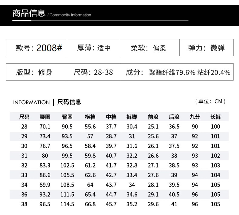 尺码:28 29 30 31 32 33 34 36 38