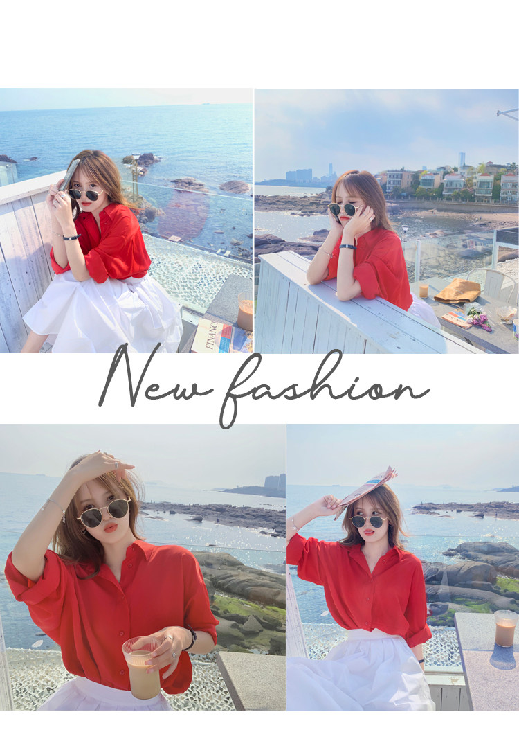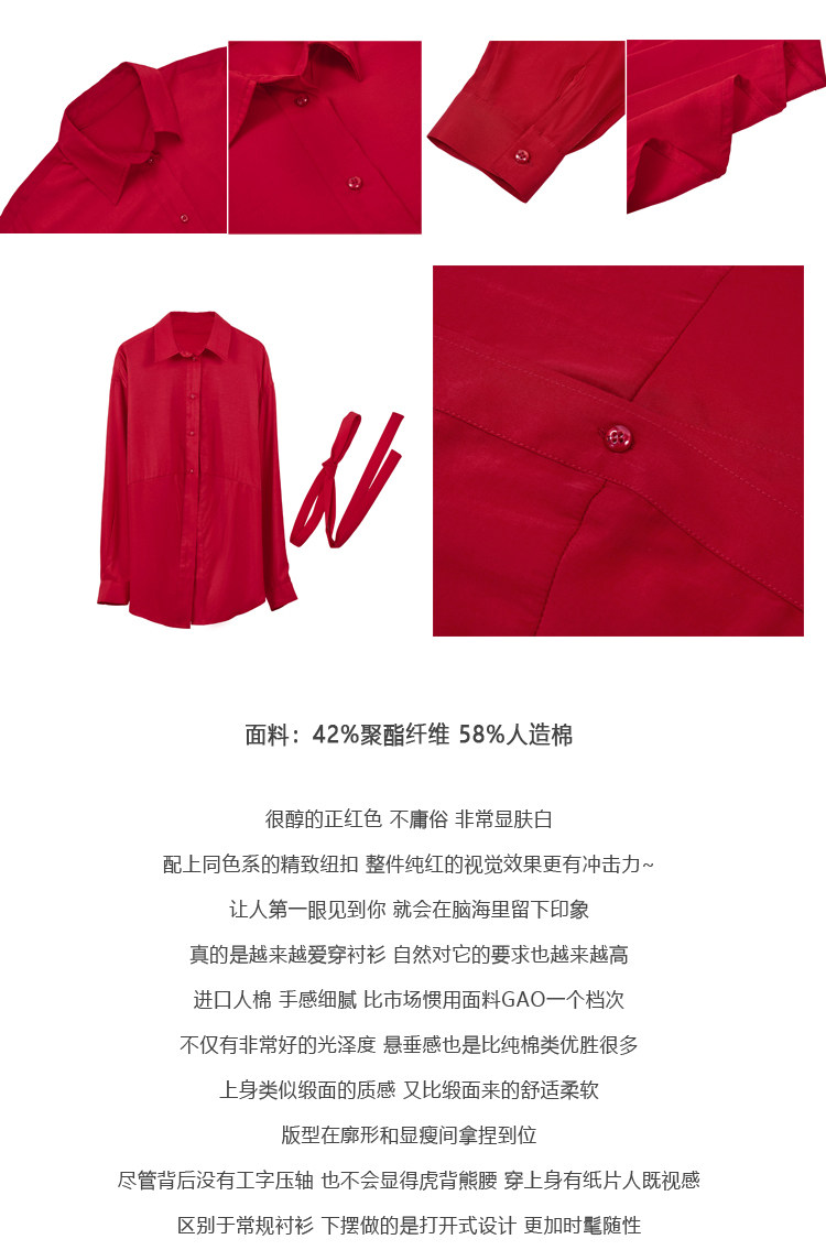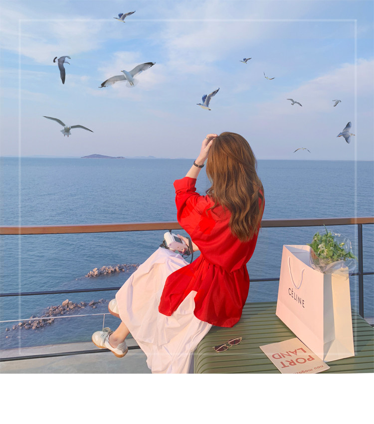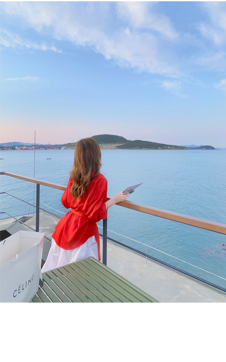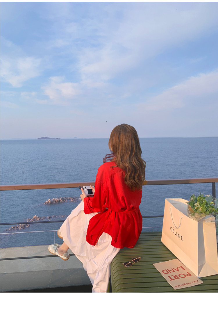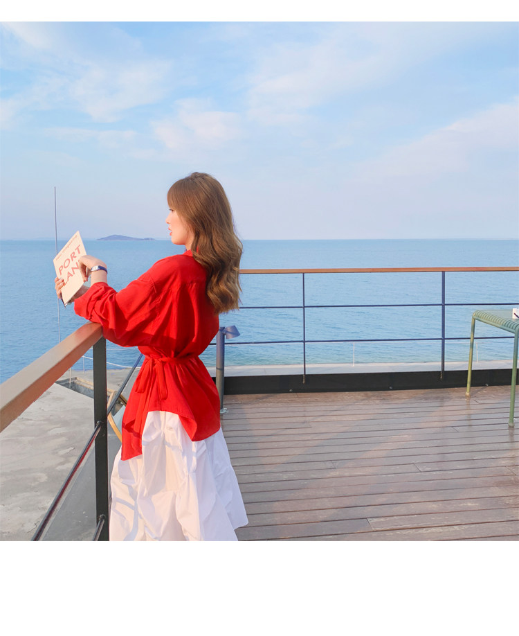 - 颜色分类: 红色衬衫 白色半身裙