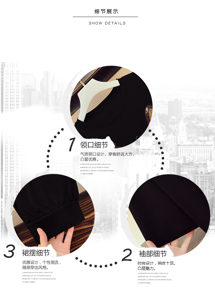 - 服装款式细节:镶钻