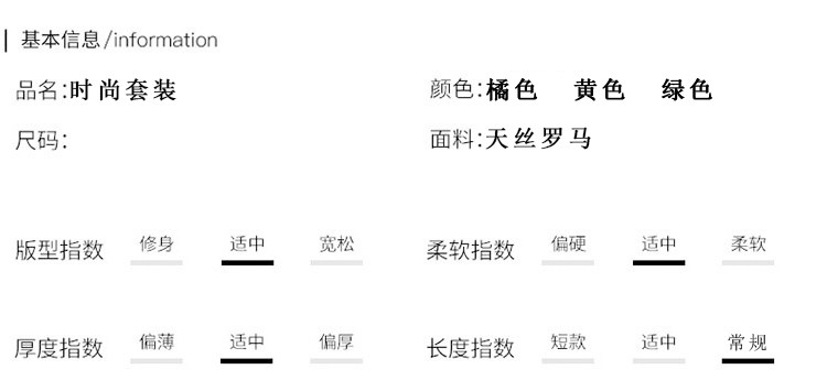 - 服装版型:修身
