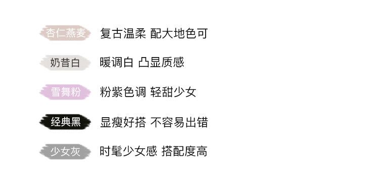 - 颜色:经典黑 奶昔白 粉色 燕麦 灰色