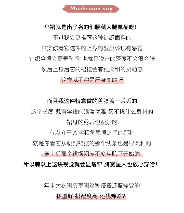 | 产品信息:俗称 15%羊毛定制纱 注意事项:针织裙建议洗涤时候轻柔快速洗涤,拧干后,对折晾晒以免悬挂边长 | |||||