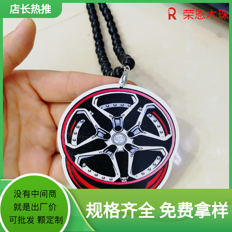 车内后视镜挂饰轮毂减震车挂潮流改装车配饰木质木头车挂现货直供